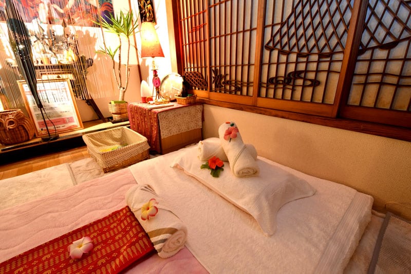一歩店内に入ると、そこは都会の喧騒を忘れる温かい空間。「ランナー」という店名(タイ北部の古都の意)の通り、タイの伝統的な温かさと、日本の「おもてなし」が融合したアットホームな雰囲気が特徴です。高級店の敷居の高さはなく、どなたでも気兼ねなくくつろいでいただけるよう、スタッフ一同笑顔でお迎えします。施術後には無料のドリンクサービスもあり、心身ともにリラックス。現金払いのみのシンプルな会計システムや、あえて個室を作らない開放的な空間作りも、常連様同士やスタッフとの距離が近い、安心感のあるお店作りにつながっています。